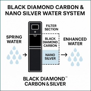 Our proprietary Black Diamond Carbon & Nano Silver Water System is a next-generation purification and enhancement technology designed to transform spring water into cleaner, more energized, wellness-supporting water.