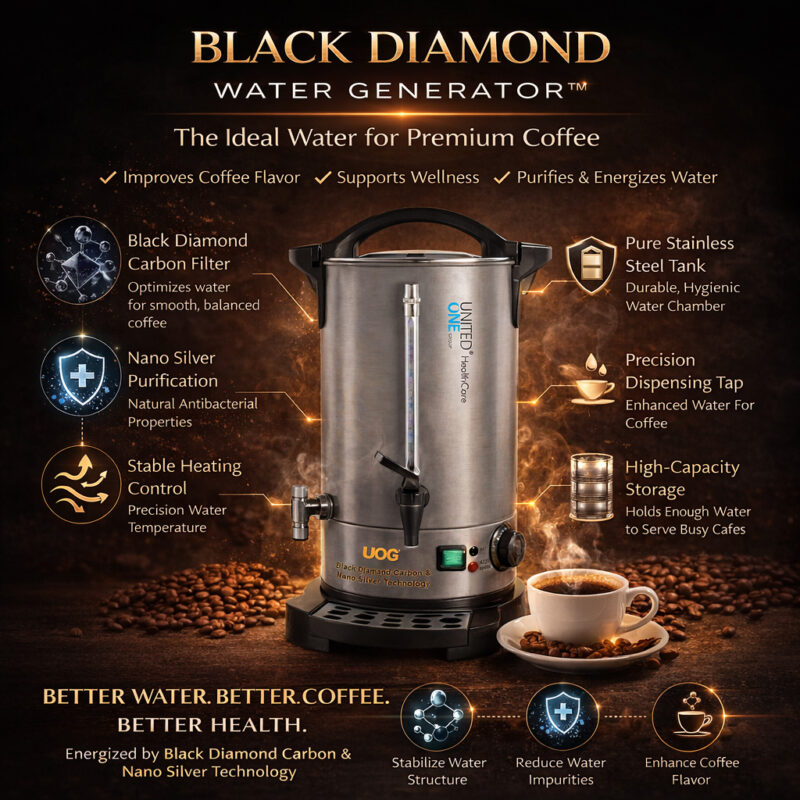 The UOG Black Diamond Water Generator™ is designed to transform ordinary water into wellness-focused coffee water, optimized for smooth taste, balanced extraction, and improved drinking comfort.