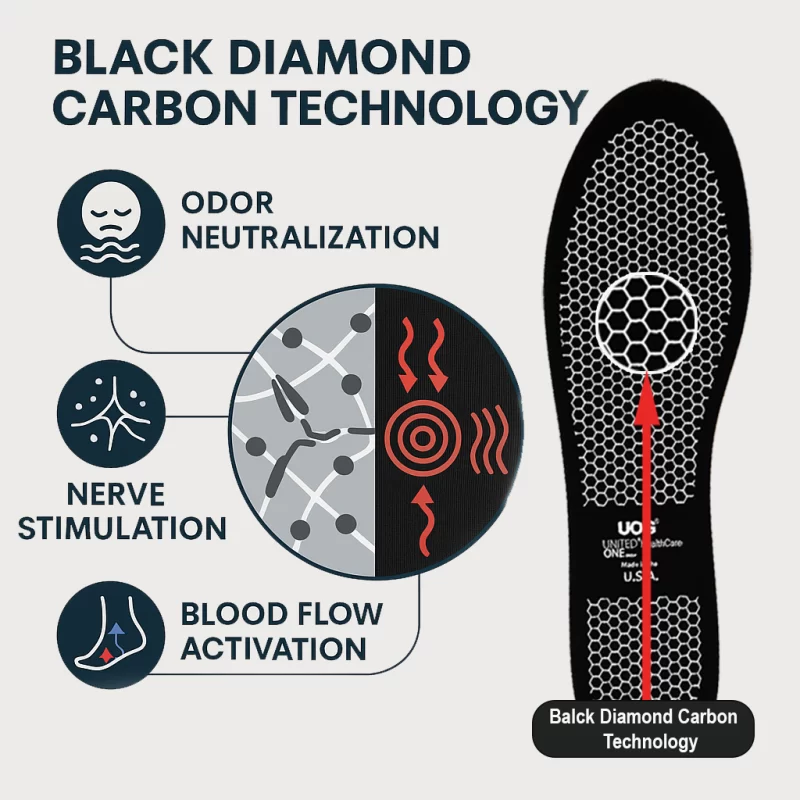 Black Diamond Carbon Technology stimulates blood flow and improves circulation by emitting beneficial wavelengths.