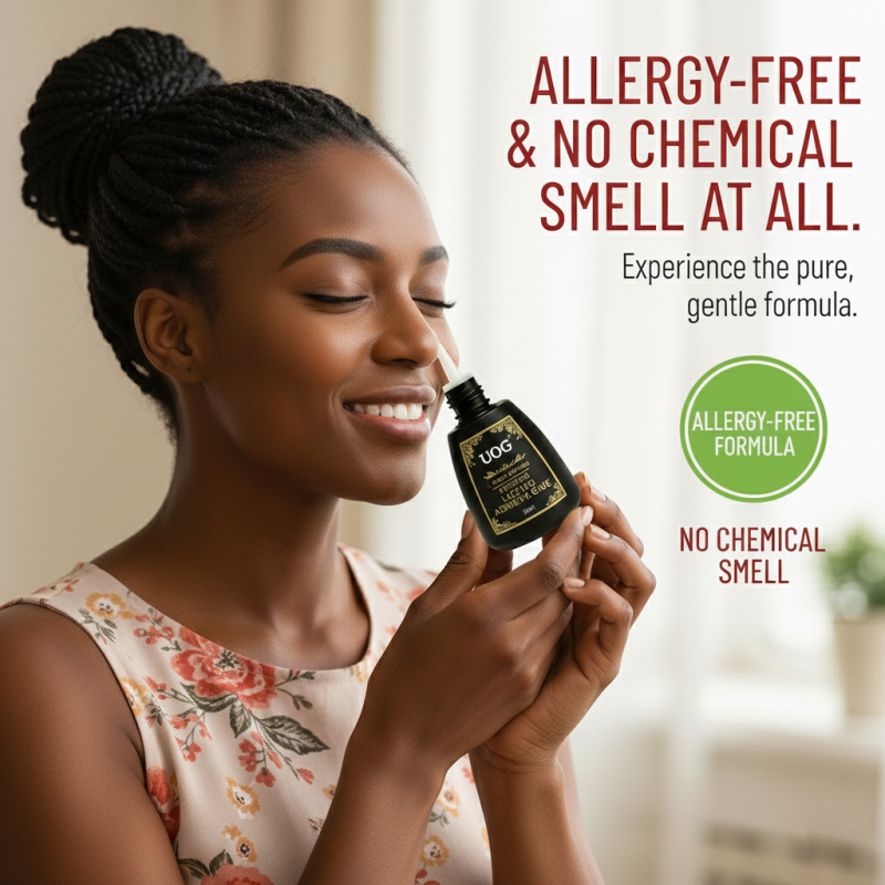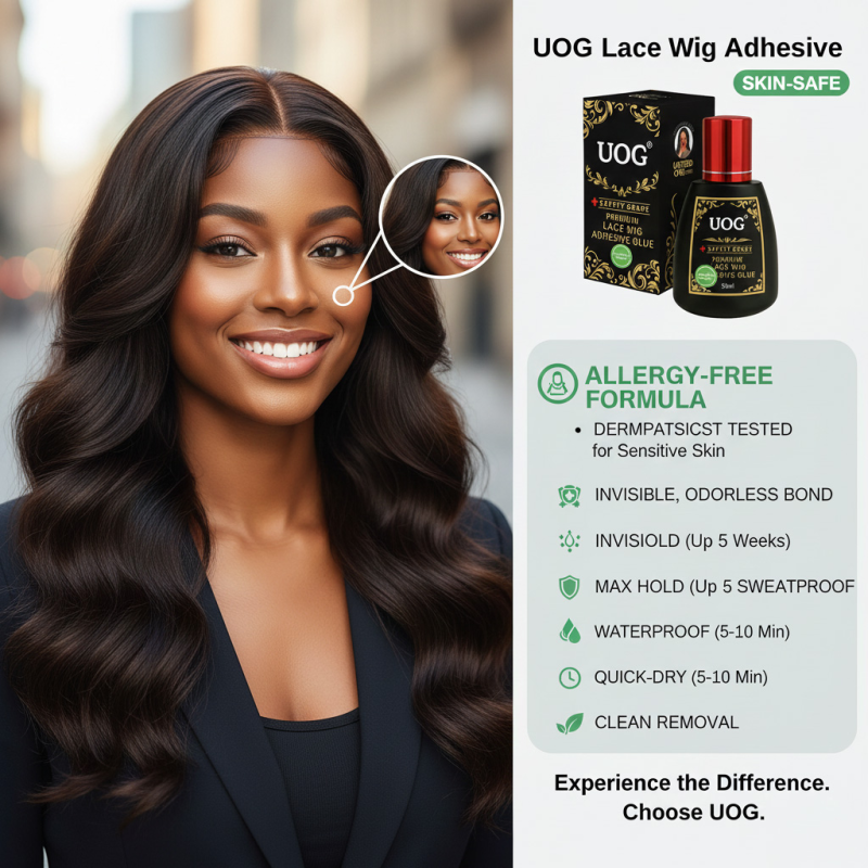 - ALLERGY-FREE FORMULA: UOG Toupee Adhesive Glue is specially formulated with eco-friendly components, ensuring it is entirely safe for those with sensitive skin and all other skin types. Our commitment to environmental sustainability and skin health means you can use our product without any worries about allergic reactions.